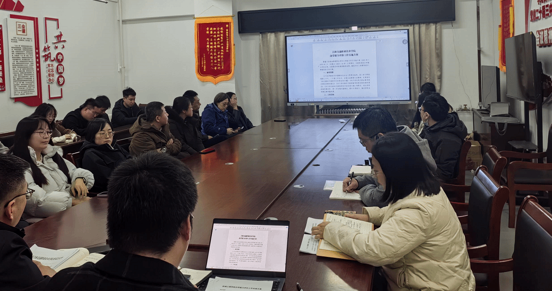为深入贯彻落实《吉林省高等职业学校办学能力评价实施方案(2025-2030年)》精神,全面做好学校办学能力评价迎评工作,3月18日,机械学院组织召开办学能力评价工作动员大会,向全体教师传达学校《吉林交通职业技术学院办学能力评价工作实施方案》的核心内容,明确本学期重点工作任务。